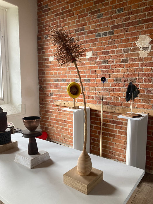 Looking for Clues 1, Devon Sculpture Park 2021. Still Looking for Clues, Maker Heights 2022. Salvage, Gunshed Maker Heights 2023 with paintings by Christopher McHugh.